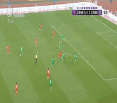 第11分钟,北京国安从右边路发动进攻。球队新援恩克洛洛边路内切后送出传中,门前法比奥没能顶到皮球,后点插上的张玉宁也没能完成跟进的射门,上海海港再次逃过一劫。