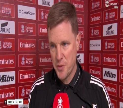 足总杯1/8决赛,纽卡主场1-3输给曼城,纽卡主帅埃迪-豪赛后接受了TNT体育的采访。