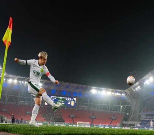 3月8日,北京国安队球员张稀哲在比赛中发角球。新华社记者 肖艺九 摄