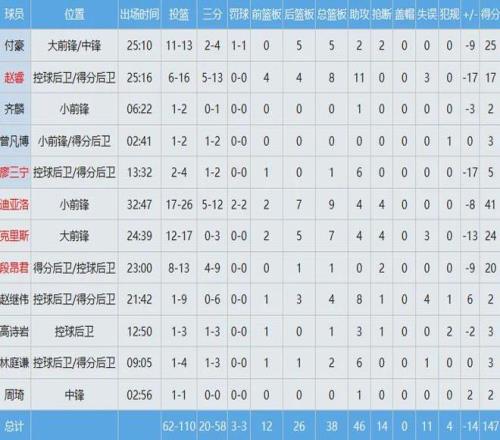 南区队数据如下:
