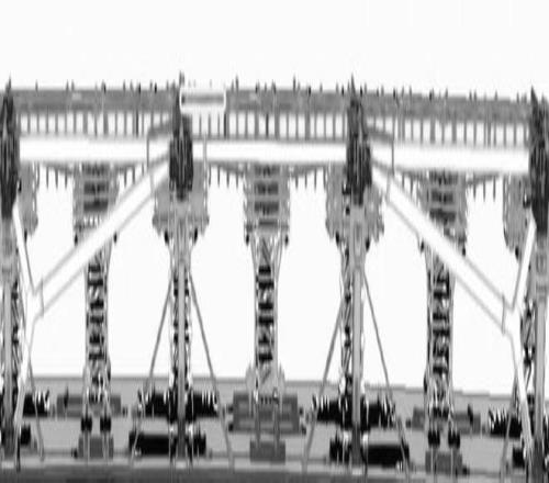 一些由相同材料制成的加固结构将连接各个立柱,并形成三角形结构。从每根立柱延伸出一种名为“径向梁”的金属构件,形状类似车轮辐条,从外围延伸至球场中心。当这些梁和对应的径向结构完成搭建后,施工人员将开始安装并拉紧钢缆,通过张力系统支撑整个顶棚的重量。以下是利马克关于顶棚立柱结构的设计图。