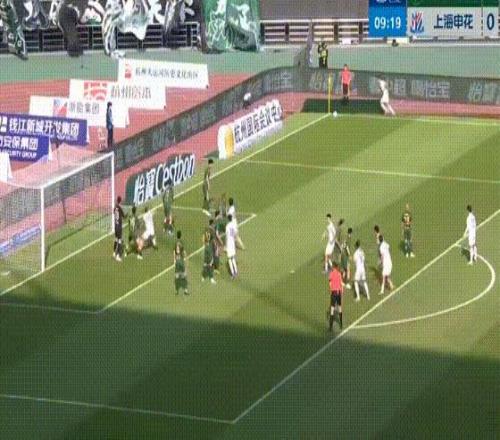 第10分钟,浙江队角球开到禁区被顶出,特谢拉迎球凌空射门打进,上海申花客场1-0领先。