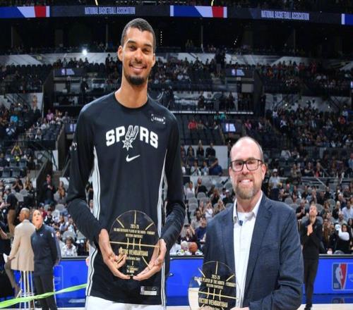 凭借这样的表现,文班赛前才领取了2月份最佳球员+2月份最佳防守球员两项大奖。