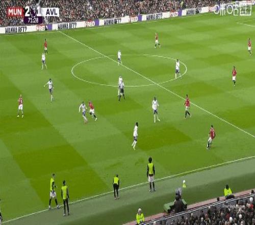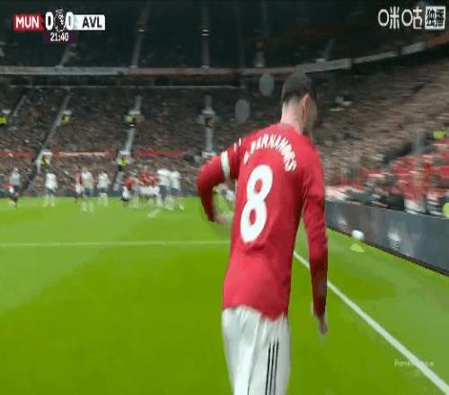 联赛第7球!比赛第53分钟,B费角球助攻卡塞米罗头槌打破僵局,曼联1比0维拉!