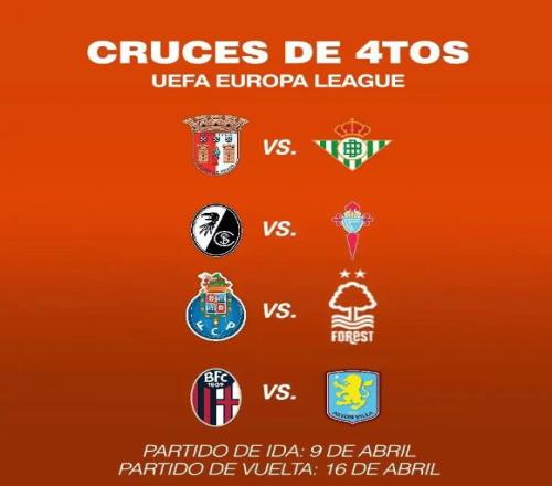 北京时间3月20日,本赛季欧联八强全部产生:布拉加、贝蒂斯、弗赖堡、塞尔塔、波尔图、诺丁汉森林、博洛尼亚、阿斯顿维拉。从联赛分布看,英超、西甲、葡超各占两席,德甲和意甲各剩一队,法甲颗粒无收。