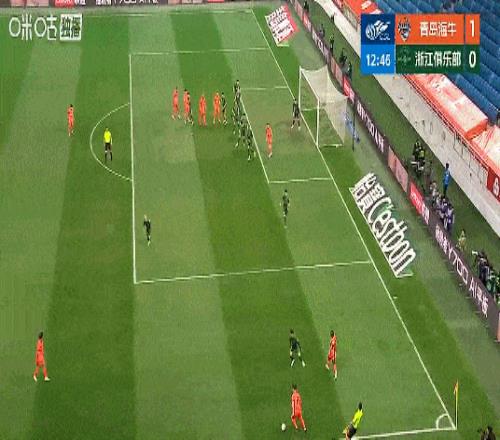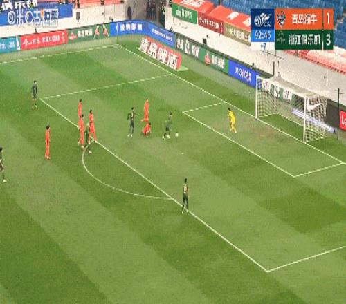 补时阶段,替补登场陶强龙锦上添花,浙江队4-1海牛。