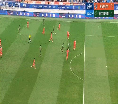 第54分钟,米特里策利用个人能力强行突破后回传,王钰栋门前轻松包抄破门,浙江1-1海牛,王钰栋连场破门。