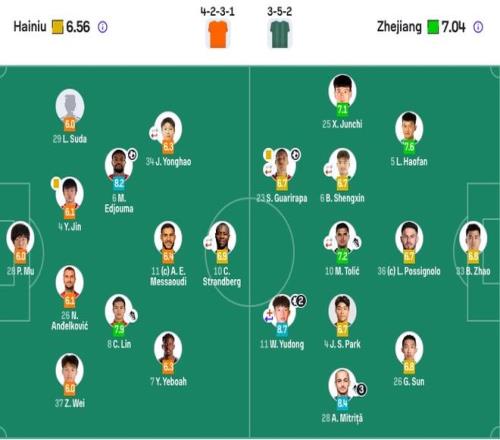 浙江队首发(3-5-2)
