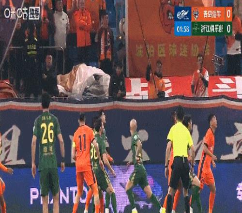 第3分钟,牟鹏飞出击撞到托利奇,后者头部出血接受治疗。