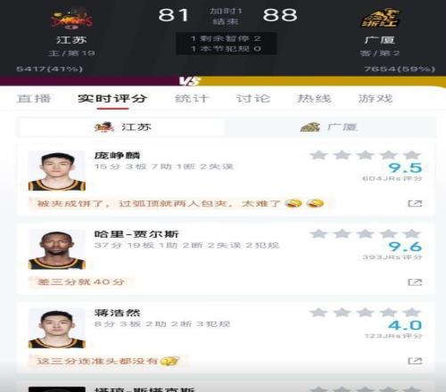 谁料这场被预判为“一边倒”的较量,竟鏖战至加时才见分晓,广厦最终以88比81惊险过关,胜得格外吃力。