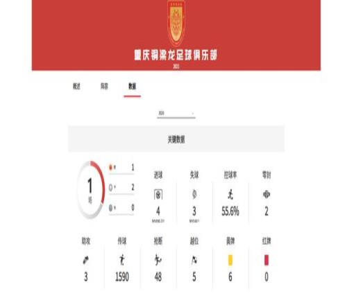 三场比赛下来,重庆铜梁龙未尝败局,累计打进4球,丢掉3球,丢球数与多队并列中超第二少,并以1胜2平积5分的总成绩,位居中超积分榜第三。