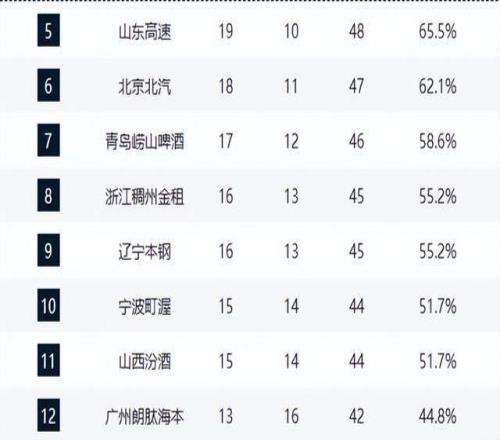 青岛队(17胜12负)、浙江队(16胜13负)分列第七、第八,近期连败后优势缩水。辽宁队以16胜13负升至第九,近8战7胜,展现出强劲复苏态势,八强席位触手可及。宁波队(15胜14负)、山西队(15胜14负)紧咬季后赛边缘。