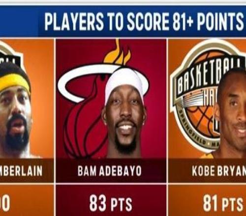 科比81分纪录被打破!阿德巴约狂砍83分,历史第2人