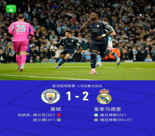 剑南春两回合皇马51曼城晋级,维尼修斯双响,哈兰德破门