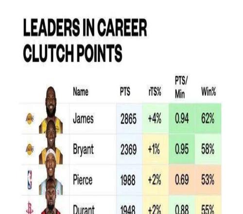 詹姆斯的关键时刻总得分历史第一!胜率也是历史第一!