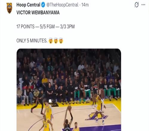文班8分钟25分全美第1热搜!张伯伦降临冲GOAT思念科比言论被扒