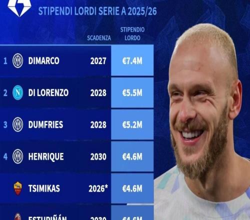 本赛季意甲边后卫工资榜:迪马尔科740万欧元第1,恩里克第4