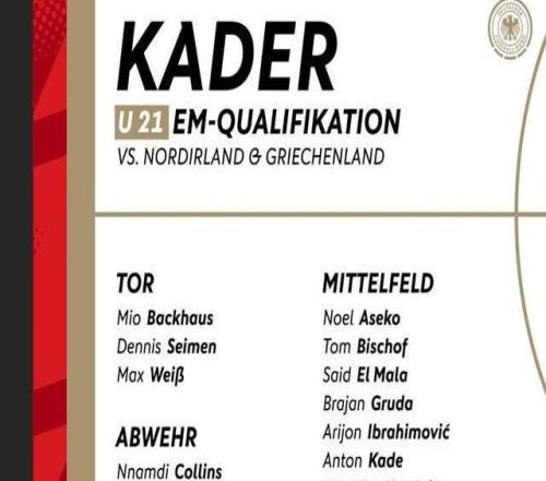 德国U21新一期大名单:比朔夫、赛义德马拉、格鲁达在列